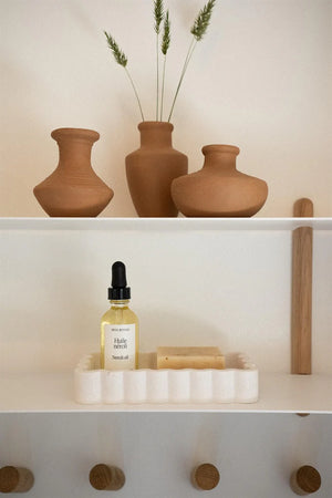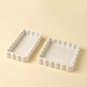 Elevate your space with this charming rectangular tray, where function meets artistry. Crafted from eco-conscious marble composite—made by repurposing powdered marble—it brings sustainable sophistication to any room. The graceful scalloped edges and delicate sparkle throughout create visual warmth, while the smooth surface keeps jewelry, fragrances, and keepsakes beautifully organized. Whether styled on a nightstand, vanity, or entryway console, this versatile piece adds a refined, sculptural accent. Simply wipe clean with a soft, dry cloth to maintain its polished finish. A thoughtful choice for those who value both style and environmental responsibility.