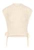This sleeveless knitted vest features a loose fit, round neckline and openwork design for a modern layered look. Adjustable side ties ensure versatile styling and enhanced comfort for everyday wear.