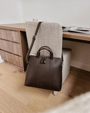 The Louenhide Rhodes Laptop Bag is a spacious and stylish work tote and a Louenhide classic. Season on season, this computer bag is a customer favourite, and this version with contrast trim styling and an additional included metallic Guitar Strap, is our most elevated version yet. Spacious enough to fit up to a 15-inch laptop, with plenty of room for notebooks, pens, and books. Wear comfortably on your shoulder with the adjustable and detachable strap. Extra padding and multiple compartments will keep your laptop or tablet safe and protected.