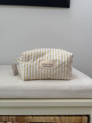 The Yellow Stripes Quilted Pouch – Small is the perfect companion for your everyday essentials. Designed to hold your go-to makeup, skincare minis, or on-the-go must-haves, this compact size slips easily into your tote, carry-on, or gym bag.
