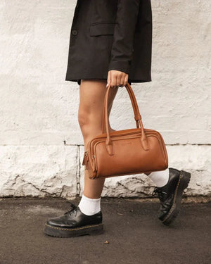 The Louenhide Paloma Handbag is ready to turn heads. Designed for the off-duty it-girl looking to make a statement, the bowling bag is back in style for a reason. While the secure zip closure keeps your belongings safe, the long over-shoulder handles ensure all-day comfort. From its unique on-trend silhouette to the spacious interior with thoughtfully placed compartments, your essentials stay streamlined and organized. Paloma is soon to be in your everyday handbag rotation.
