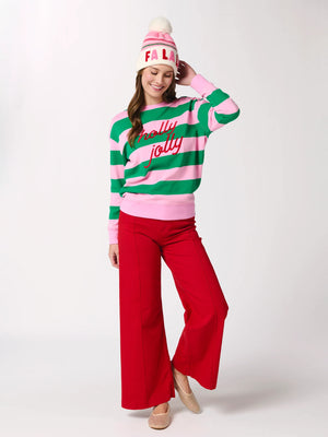 Get in the spirit with the “Holly Jolly” Striped Classic Sweatshirt – your new festive favorite. Featuring bold green and pink stripes and playful embroidered lettering, this cozy pullover is the perfect pop of color for your holiday wardrobe. Made from a soft cotton blend, it’s great for lounging, gifting, or twinning with your bestie. Pair it with jeans, joggers, or anything merry and bright!